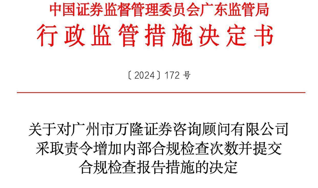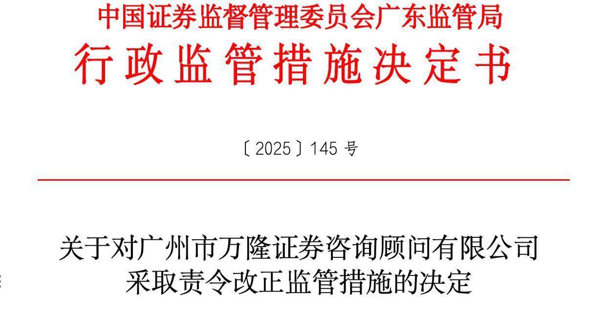 广东证监局现决定对万隆证券采取责令改正的监管措施。